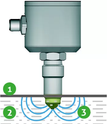 Enquanto o eletrodo de medição dos sensores e a parede do vaso formam as placas do capacitor, o líquido se torna o meio dielétrico. Devido ao valor superior de permissividade (constante dielétrica) do meio em comparação com o ar, a capacidade aumenta com a cobertura crescente do eletrodo. A alteração da capacidade é medida pelos dispositivos eletrônicos do sensor de nível capacitivo e transformada em um comando de chaveamento.